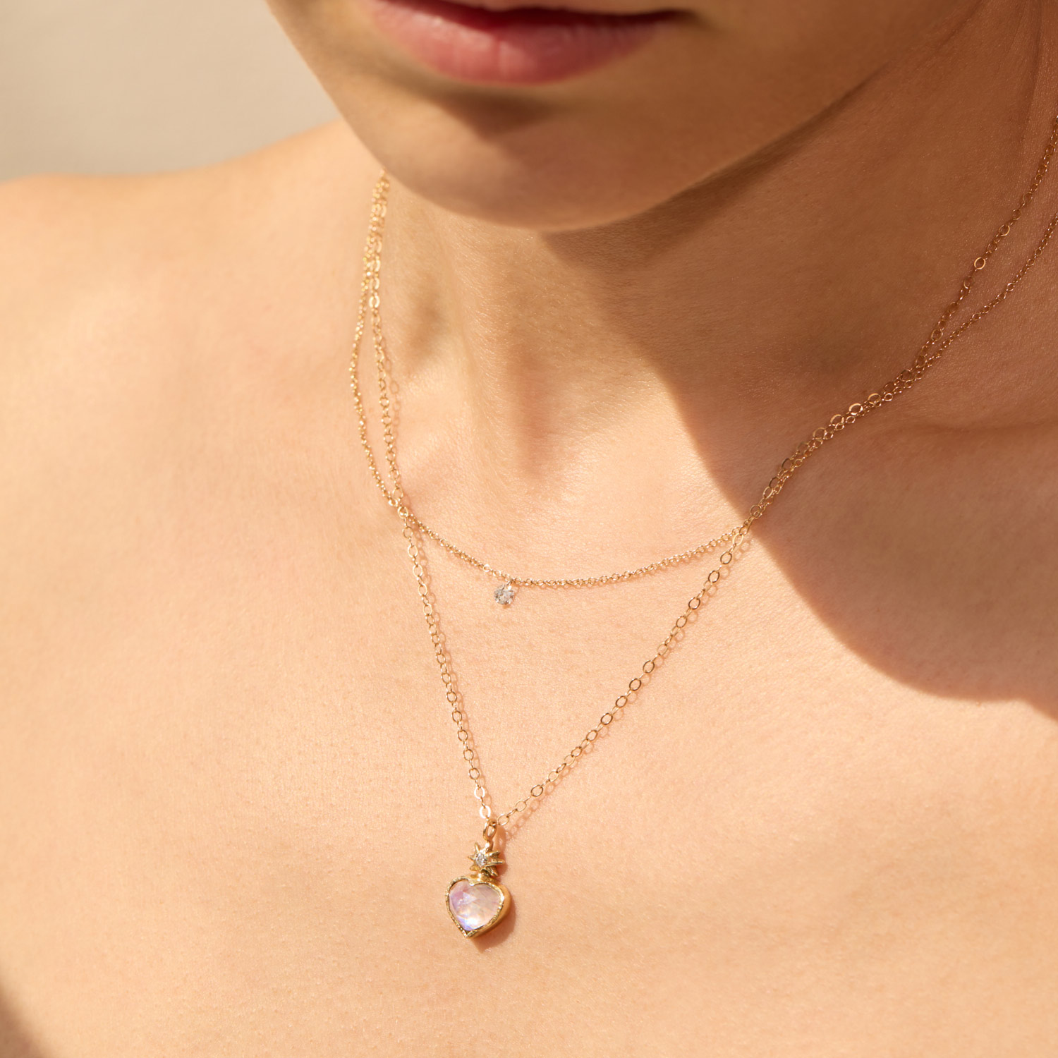Wear your heart softly ?? a carved heart-shaped moonstone in luminous 14k gold.